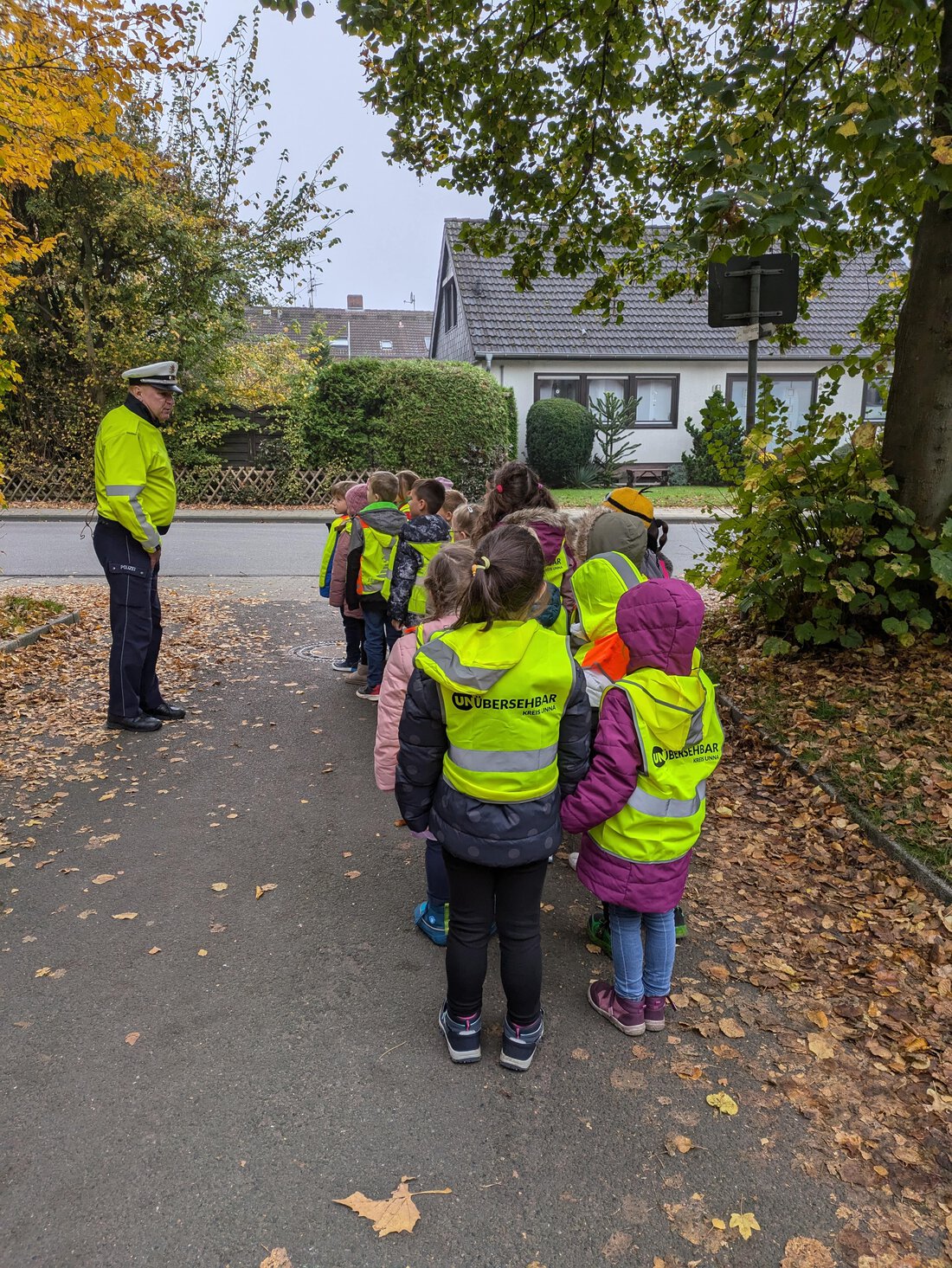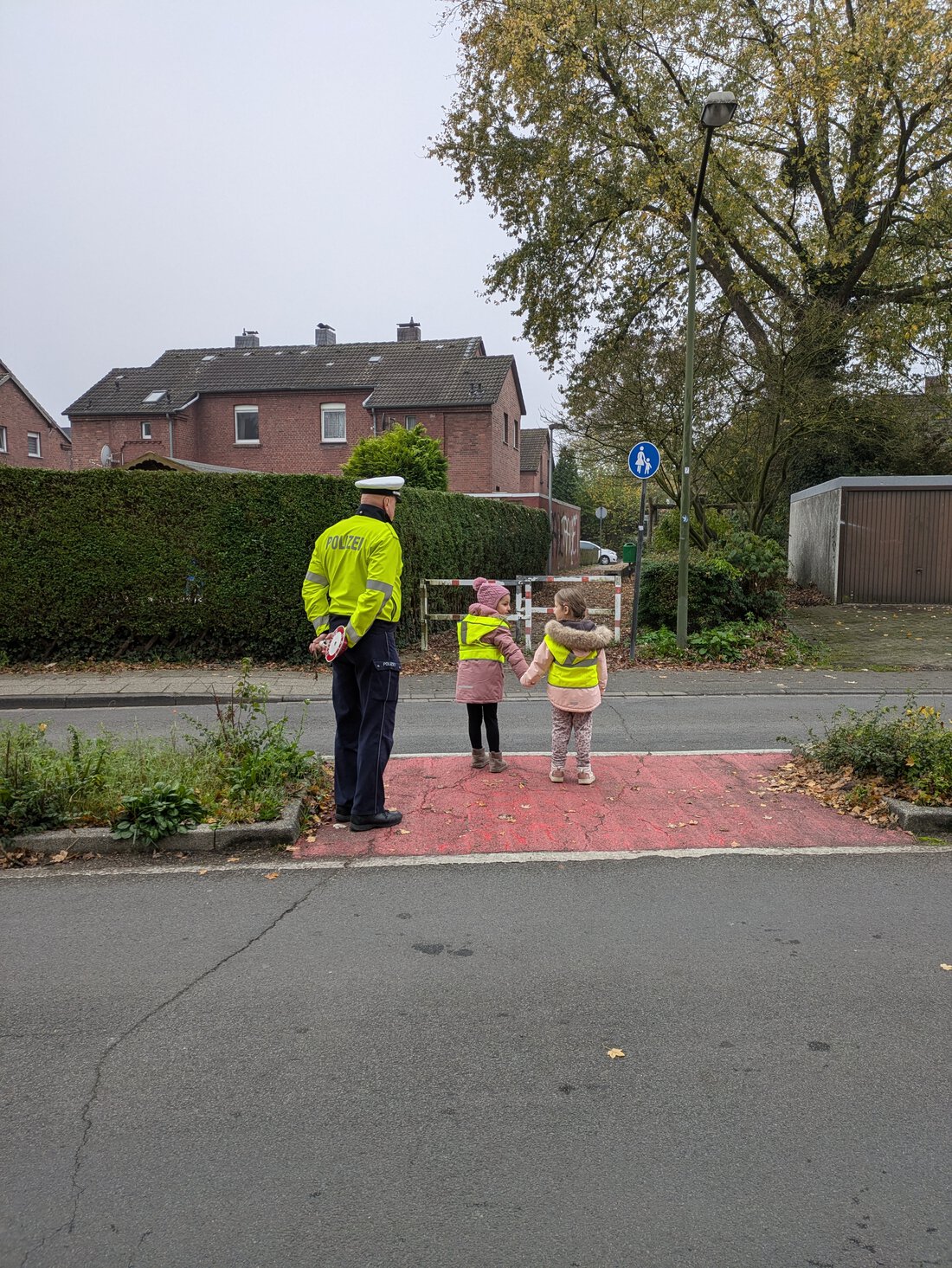 uns das Überqueren der Straße vor der Schule geübt hat. Zum Abschluss