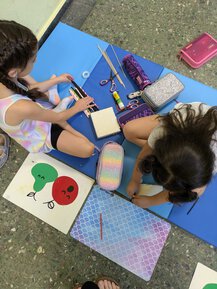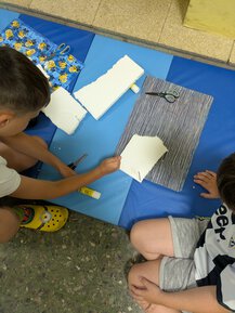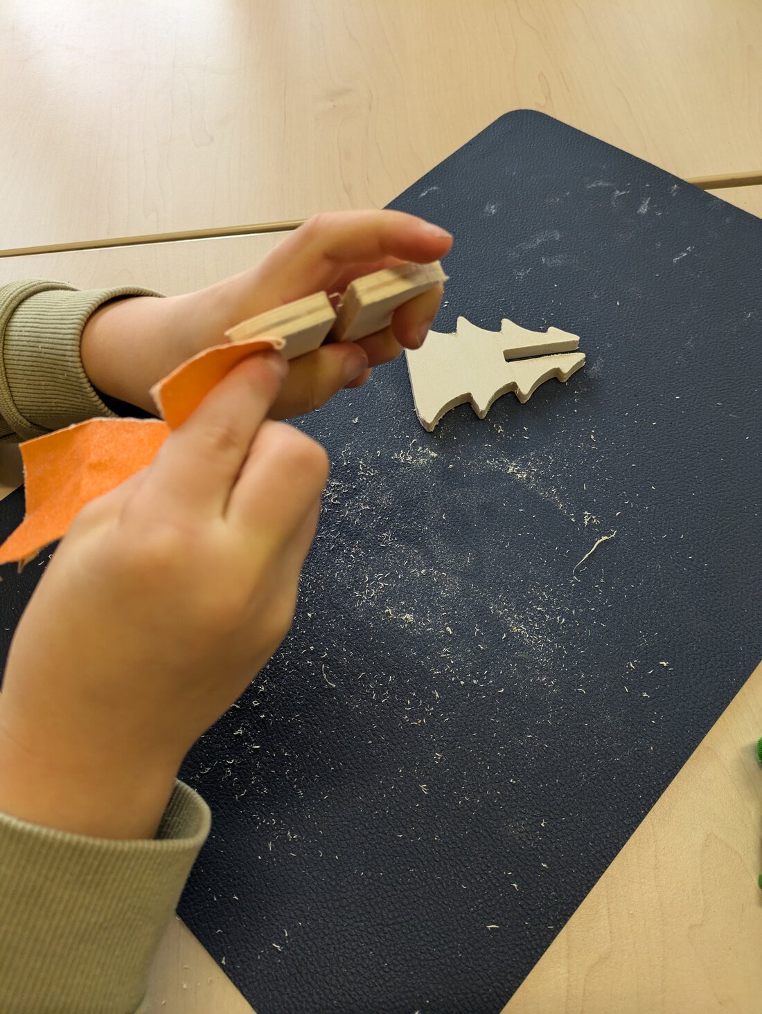 wir ordentlich Holz geschmirgelt, unsere Kunstwerke angemalt und