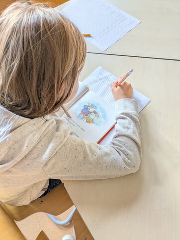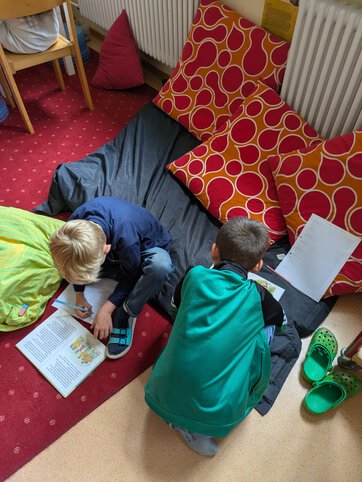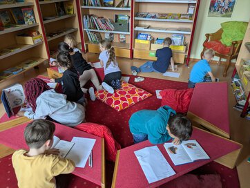 Wir waren in der Schulbücherei zum Lesen. Dort gibt es so viele tolle und interessante Bücher. Wir hatten sogar einen Leseauftrag und sollten bestimmte Wörter in den Büchern finden. Wenn wir eins der Wörter gefunden haben, haben wir den ganzen Satz auf unser Arbeitsblatt geschrieben. Das hat Spaß gemacht. So ganz fertig geworden sind wir nicht... dann müssen wir wohl oder übel nochmal wiederkommen.