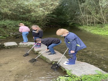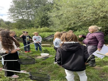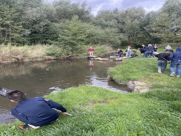 Am 12.09 besuchten wir das blaue Klassenzimmer. Nachdem wir einige interessante Informationen über die Seske erhalten haben , durften wir frühstücken. Danach konnten wir mit Keschern nach Tieren im Wasser suchen. Das hat uns besonders Spaß gemacht! Wir haben Fische, Bachflohkrebse, Rückenschwimmer und Köcherfliegenlarven gefunden. Mit dem Vorkommen dieser Tiere konnten wir die Wassergüte der Seseke bestimmen: Sie hat eine gute Wasserqualität! Das hat uns sehr gefreut. Wir werden versuchen, dass diese gute Qualität erhalten bleibt.