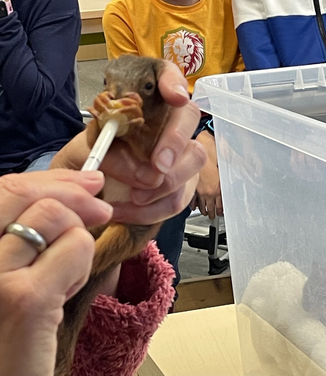 Im März und vor den Sommerferien kam uns eine Frau besuchen, die sich ehrenamtlich für Eichhörnchen einsetzt. Sie hat uns viel über die Lebensweise des Eichhörnchens erzählt. Wir haben gelernt, was Eichhörnchen fressen, wo sie leben und welche besonderen Fähigkeiten sie haben. Wir durften auch ein Eichhörnchennest bauen. Besonders schön war der Besuch der Eichhörnchenbabys.