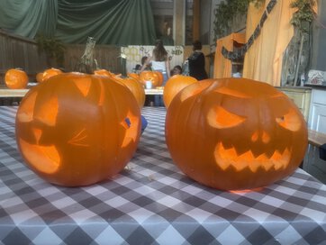 Am 20.09.2024 haben wir uns auf dem Hof Ligges zum Kürbisschnitzen getroffen. Zuerst haben wir viele spannende Dinge über den Kürbis erfahren. Anschließend durften wir uns auf dem Hof einen eigenen Kürbis aussuchen. In diesen haben wir ein Gesicht, welches wir uns aussuchen durften, geschnitzt. Das hat sehr viel Spaß gemacht. Am Ende wurde in jeden Kürbis ein Teelicht gestellt. So sahen die Kürbisse richtig toll aus. Nach zwei Stunden haben wir stolz unseren Kürbis mit nach Hause genommen.