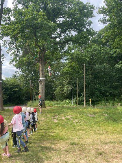 Wir haben uns morgens mit unseren Eltern auf dem Schulhof getroffen. Dann ging es endlich los in den Bus. 🚌 Nach 45 Minuten sind wir in Haltern angekommen. Dann hat uns jemand aus der Jugendherberge freundlich begrüßt und wir sind auf unsere Zimmer gegangen. Danach sind wir in den großen Aufenthaltsraum gegangen und haben unsere Flaschen gefüllt. Dann sind wir auf unsere Zimmer gegangen und haben unsere Betten bezogen. Später haben wir unsere Koffer nach oben geholt. Wir sind nach draußen gegangen und haben eine Runde Volleyball gespielt. Danach haben wir Mittag gegessen. Dann hat endlich das Römerthema angefangen. Wir haben im Anschluss Abend gegessen. Danach sind wir noch mal rausgegangen. Nach ungefähr 2 Stunden sind wir ins Bett gegangen. Am nächsten Tag haben wir Frühstück gegessen. Es war sehr lecker😋. Nach ungefähr 1 Stunde sind wir dann rausgegangen und haben Volleyball gespielt .