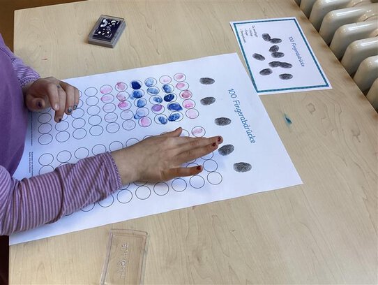 An verschiedenen Stationen drehte sich alles um die Zahl 100: Wir haben 100 Fingerabdrücke gestaltet, bis 100 gewürfelt, 100 Wörter geschrieben und viele spannende Aufgaben rund um die 100 gelöst. Mit viel Freude, Ausdauer und Teamgeist haben die Kinder gezeigt, was sie in den ersten 100 Schultagen schon alles gelernt haben.