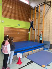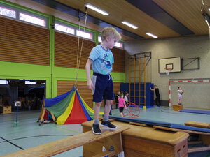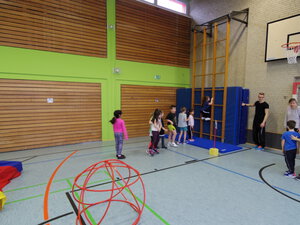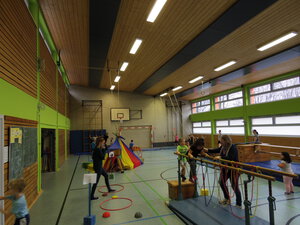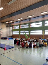 Thematisch passend wurde dazu in der Sporthalle eine Bewegungslandschaft aufgebaut. Inhaltlich wurden in den Klassen verschiedene Schwerpunkte gesetzt. So stand in der 2. Klasse die Einführung des Klassenrats im Vordergrund.